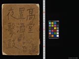 注記 | 画像53:綴じから外れた2枚 表紙「高堂置酒夜撃鼓」:岑参「酒泉太守席上酔後作」第2句/裏表紙「挙觴白眼望青天」:杜甫「飲中八仙歌」第10句 |